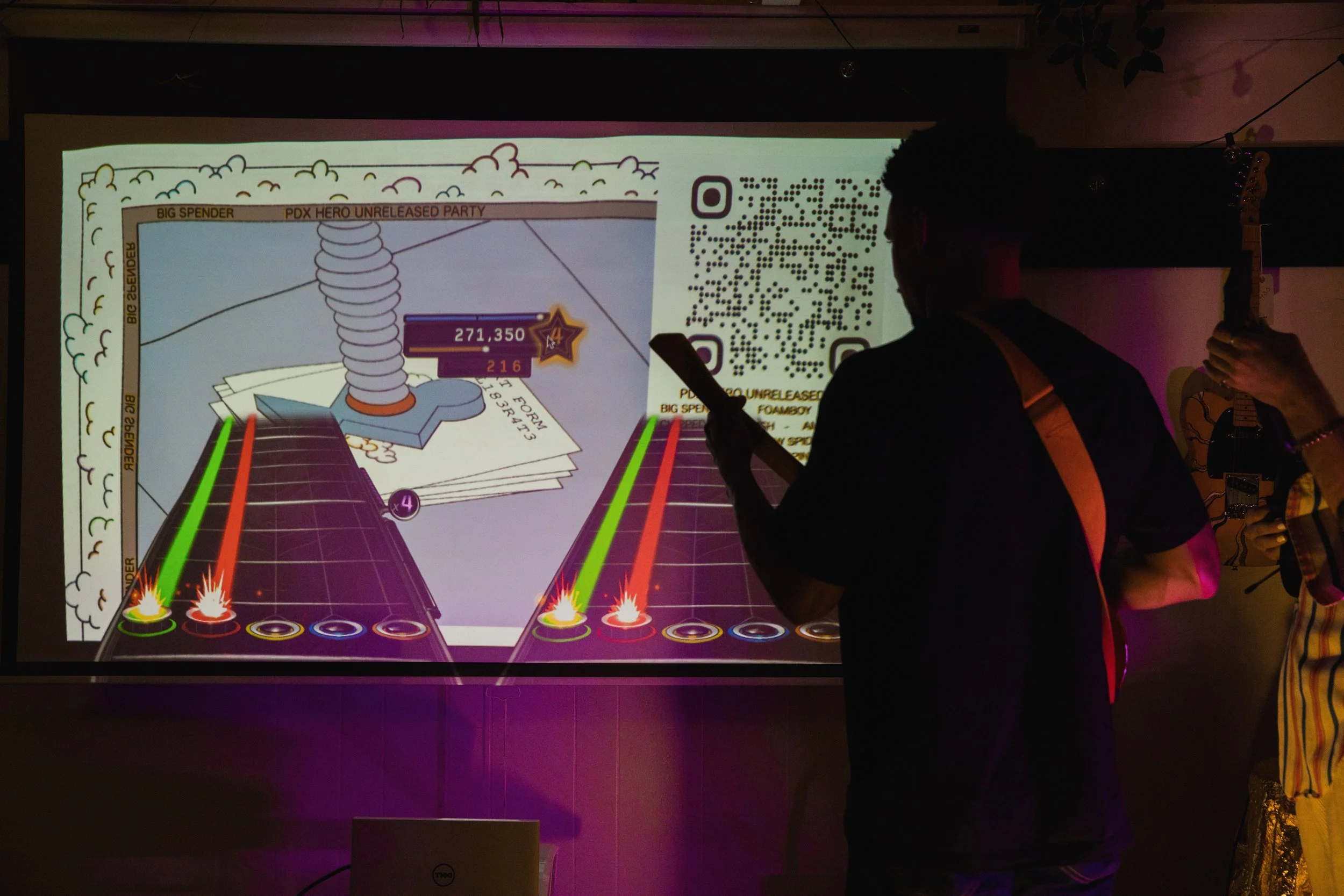 Now expanded into an event series, hosted and organized by Big Spender, PDX Guitar Hero offers attendees the opportunity to play songs of local artists on the popular 2000s video game.